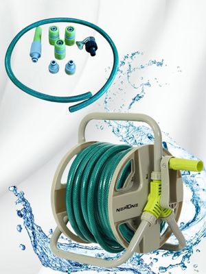 This NEPTUNE high-quality watering hose and hose reel set is designed for durability, convenience, and efficiency. Featuring a premium braided hose, it offers excellent flexibility, kink resistance, and long-lasting performance. The sturdy hose reel ensures easy storage and tangle-free use, while leak-proof connectors provide a secure and reliable watering experience. Ideal for gardening, lawn care, car washing, and more, this complete set includes all necessary fittings for a hassle-free setup. Ready to ship, this premium kit guarantees effortless watering with superior quality and performance.